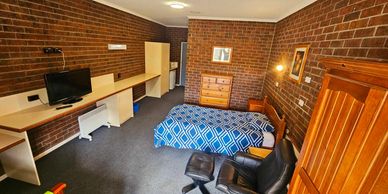 Buninyong Views Board and Lodging is a warm and welcoming haven tucked away in the heart of nature, where the simple beauty of the countryside meets the comfort of home. Our 20 private rooms with ensuite are of rustic character—think timber finishes, cosy interiors, and a touch of old-world charm—all surrounded by sweeping views of rolling hills and whispering gums. At Buninyong Views, we pride ourselves on genuine hospitality, peaceful surrounds, and the kind of charm that only the bush can bring.